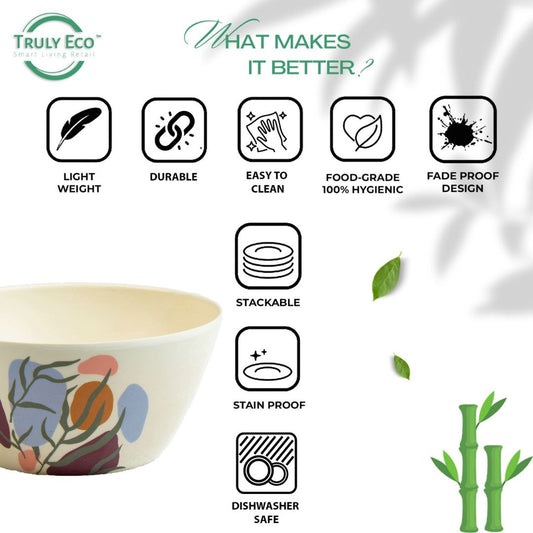 Truly Eco Bamboo Bowl Set (Large Bowl 680ml) - Green Leaf Design