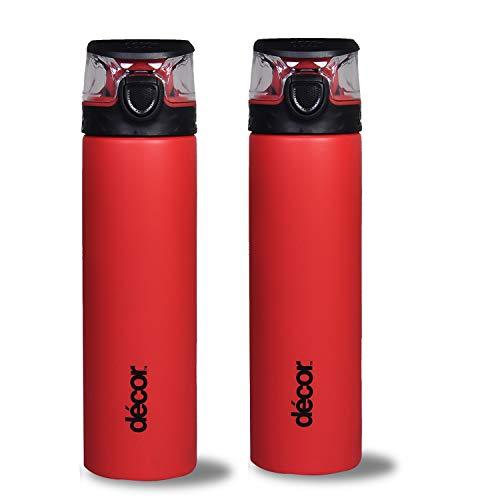 Décor Stainless Steel One Touch Water Bottles Combo, 780ml(Red & Red)