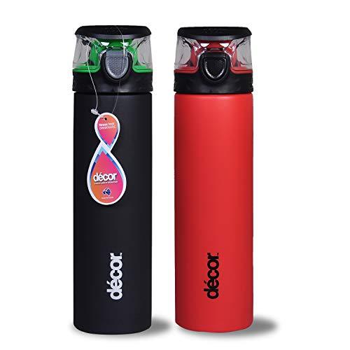 Décor Stainless Steel One Touch Water Bottles Combo, 780ml(Black & Red)